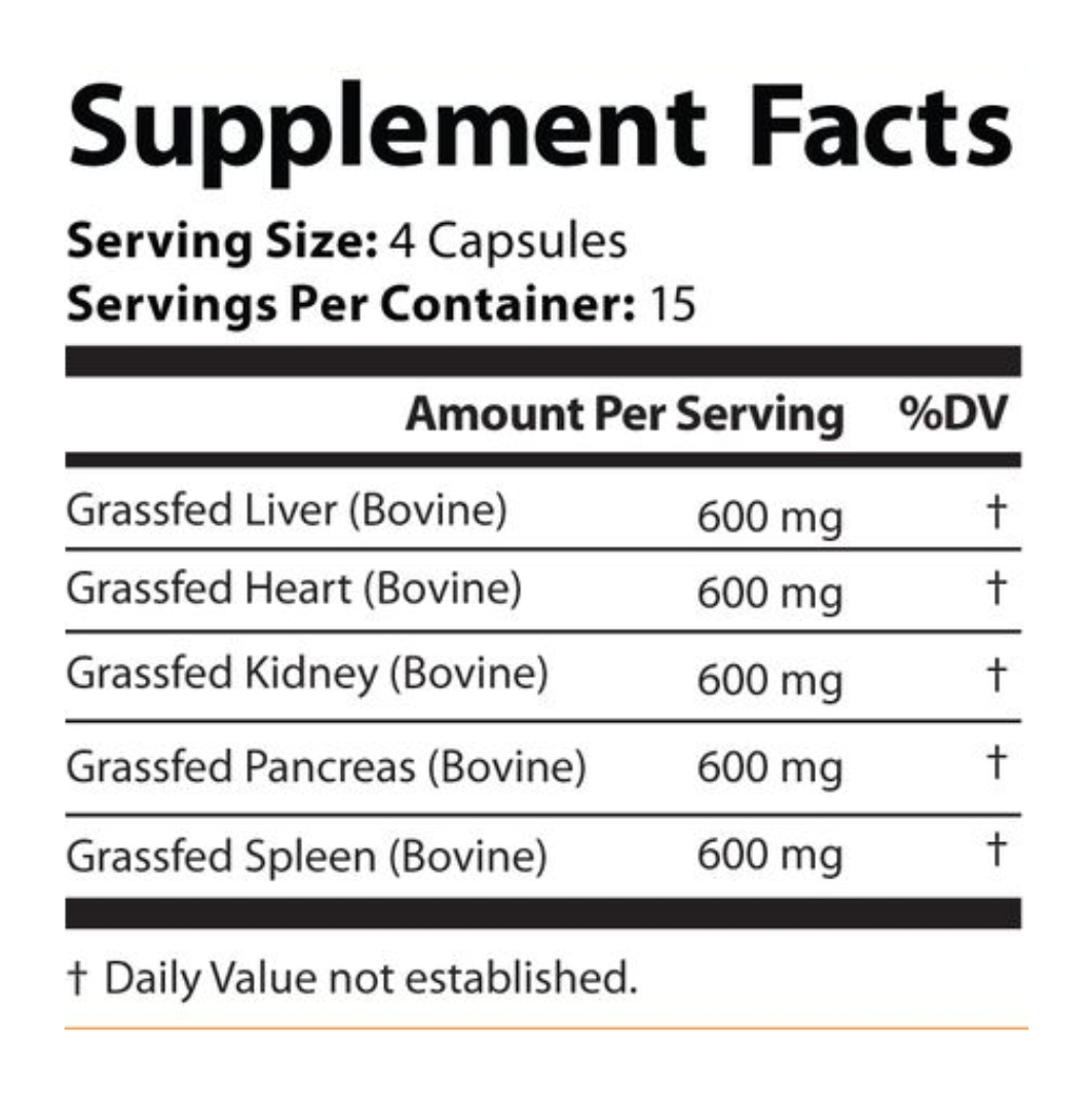 2. High quality grass-fed beef organ meat in a bioavailable and efficaciously dosed formula.